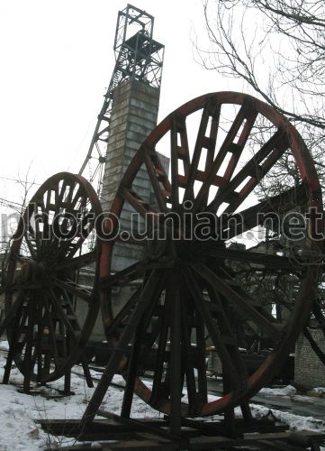 FILE Шахта им. М.И. Калинина, в Донецке, в пятницу, 27 февраля 2004 г. Шахта им. М. И. Калинина начала свою деятельность в августе 1961 г. В 1965 г. шахта вышла на проектную мощность 1,2 млн. тонн угля в год и в течение 25 лет работала на уровне проектной мощности и выше. Максимальный уровень добычи угля по шахте достигнут в 1974г. - 1,4 млн. тонн в год, производительность труда рабочего по добыче угля при этом составила 43,6 тонн. Фото УНИАН