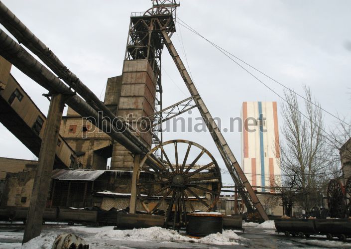 FILE Шахта им. М.И. Калинина, в Донецке, в пятницу, 27 февраля 2004 г. Шахта им. М. И. Калинина начала свою деятельность в августе 1961 г. В 1965 г. шахта вышла на проектную мощность 1,2 млн. тонн угля в год и в течение 25 лет работала на уровне проектной мощности и выше. Максимальный уровень добычи угля по шахте достигнут в 1974г. - 1,4 млн. тонн в год, производительность труда рабочего по добыче угля при этом составила 43,6 тонн. Фото УНИАН
