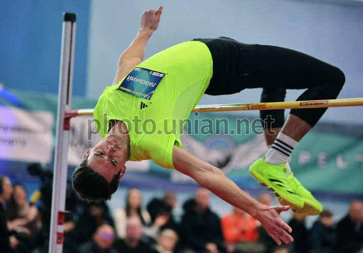 Украинский легкоатлет Владислав Лавский во время турнира XXVII Мемориал Алексея Демьянюка во Львове, 17 января 2026 г. Львов снова стал центром украинской легкой атлетики. В городе прошел XXVII Мемориал Алексея Демьянюка – традиционный турнир по прыжкам в высоту в помещении, посвященный памяти выдающегося украинского легкоатлета Алексея Демьянюка. Победителями 27 Мемориала стали Олег Дорощук (на высоте 2 м 24 см) и Ярослав Магучих. Олимпийская чемпионка Парижа-2024 уверенно заняла первое место, преодолев планку на высоте 2,03 метра. Этот результат стал новым рекордом турнира, а также лучшим показателем сезона в мире. Фото Кравс Евгений / УНИАН
