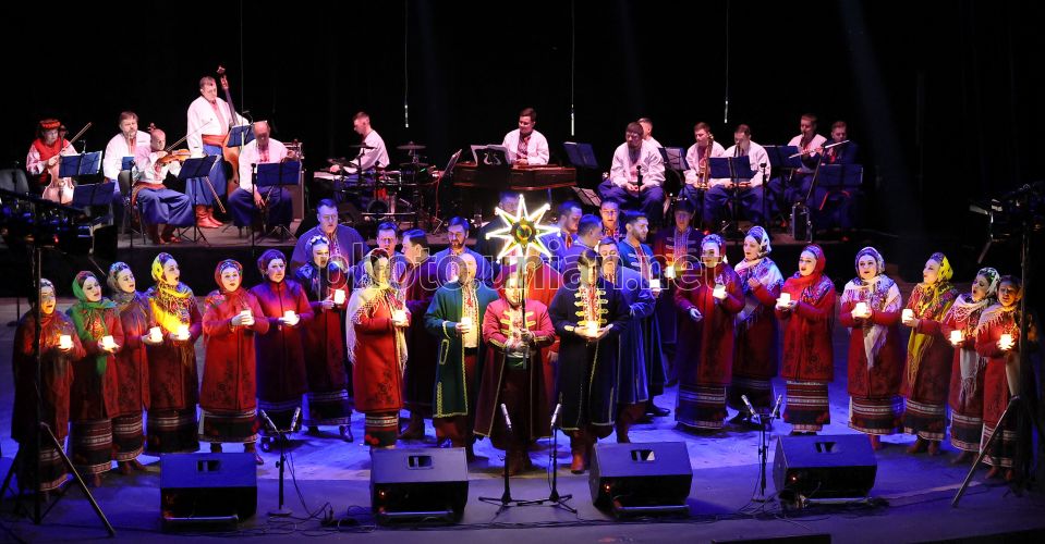 Рождественский концерт Национального заслуженного академического украинского народного хора имени Григория Веревки, во Львове, 19 января 2026 г. В концерте приняли участие хор, оркестр и балет Национального хора Веревки — около 70 артистов на сцене. Фото Кравс Евгений / УНИАН