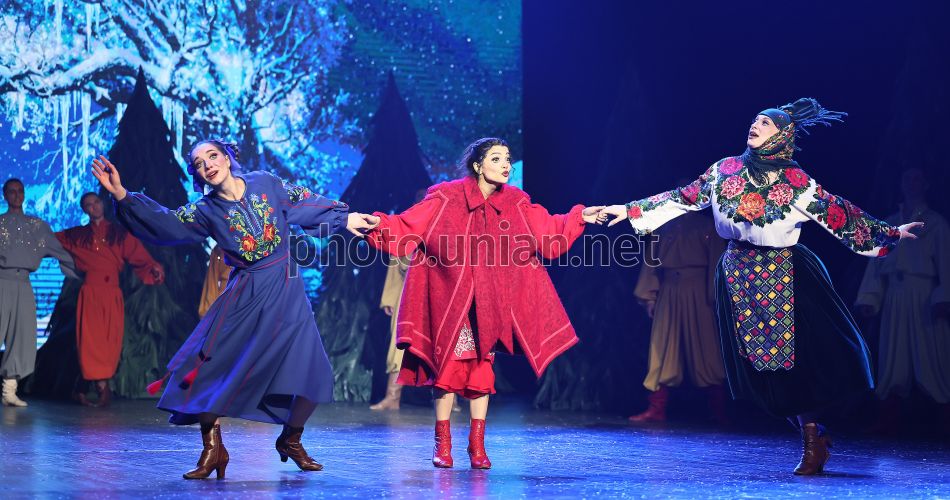 Артисты Национального заслуженного академического ансамбля танца Украины имени Павла Вирского во время танцевального представления "Сказка о 12 месяцах", во Львове, 20 января 2026 г. Фото Кравс Евгений / УНИАН