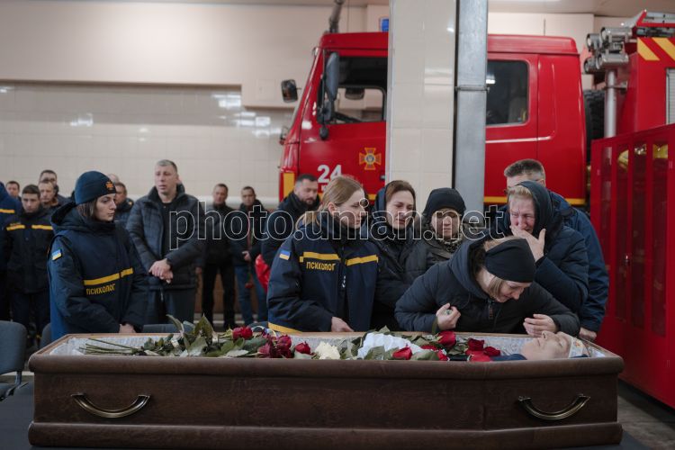 Церемония прощания со спасателем Александром Зибровым, получившим ранения 9 января в результате повторного обстрела многоэтажки, в Киеве, 28 января 2026 г. Александр Зибров приехал с коллегами по вызову и попал под повторный вражеский удар 9 января в Дарницком районе столицы. К сожалению, после 18 суток борьбы за жизнь его сердце остановилось. Фото Ратынский Вячеслав / УНИАН