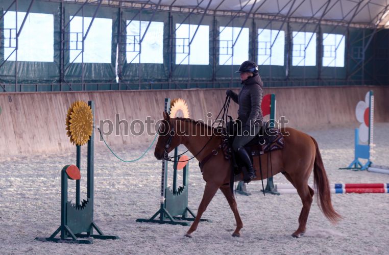Сотрудница оленьего парка "На рогах" демонстрирует выездку в крытом манеже в оленьем парке "На рогах", в селе Мусийки (Киевская область), 31 января 2026 г. Фото Синица Александр / УНИАН