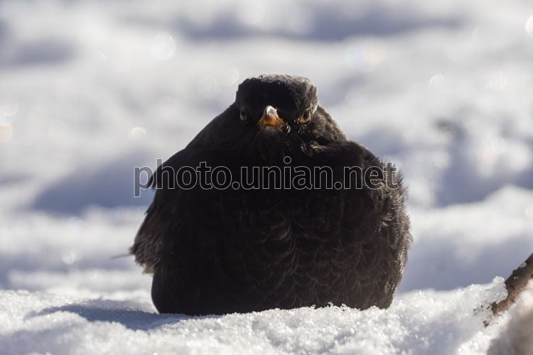 Чёрный дрозд в парке в Киеве, 2 февраля 2026 г. Фото УНИАН