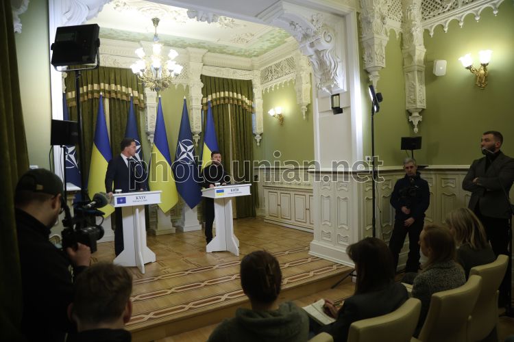 Президент Украины Владимир Зеленский и Генеральный секретарь НАТО Марк Рютте во время совместного общения с журналистами в Киеве, 3 февраля 2026 г. Фото Ковальчук Виктор / УНИАН