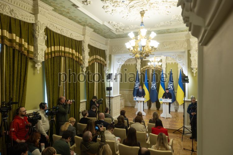 Президент Украины Владимир Зеленский и Генеральный секретарь НАТО Марк Рютте во время совместного общения с журналистами в Киеве, 3 февраля 2026 г. Фото УНИАН
