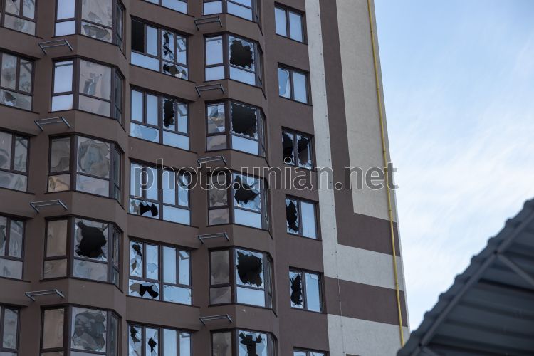 Выбитые взрывной волной окна в жилом доме после массированного обстрела Одессы российскими дронами, 9 февраля 2026 г. В ночь на 9 февраля оккупационная армия нанесла по Одессе массированный удар дронами, есть попадание в многоэтажный жилой комплекс, известно о погибшем. Фото Гиманов Александр / УНИАН