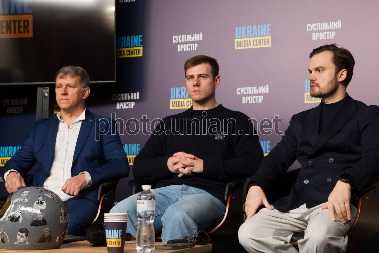 Отец и тренер Владислава Гераскевича Михаил Гераскевич, украинский скелетонист Владислав Гераскевич, адвокат Евгений Пронин (слева направо) во время пресс-конференции, в Киеве, 19 февраля 2026 г. Украинский скелетонист Владислав Гераскевич рассказал о планах бороться дальше после проигранного суда в CAS по его дисквалификации по Олимпиаде-2026. Гераскевича дисквалифицировали из Олимпиады-2026 за желание выступить в "шлеме памяти", на котором изображены погибшие украинские спортсмены. Фото Надежда Звягина / УНИАН