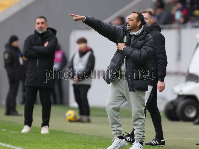 Главный тренер ФК "Карпаты" Франсиско Фернандес во время матча 17-го тура Чемпионата Украины среди команд УПЛ (Премьер-лига) по футболу между ФК "Шахтер" (Донецк) и ФК "Карпаты" (Львов) во Львове, 22 февраля 2026 г. Матч закончился со счетом 3:0 в пользу ФК "Шахтер" (Донецк). Фото Кравс Евгений / УНИАН