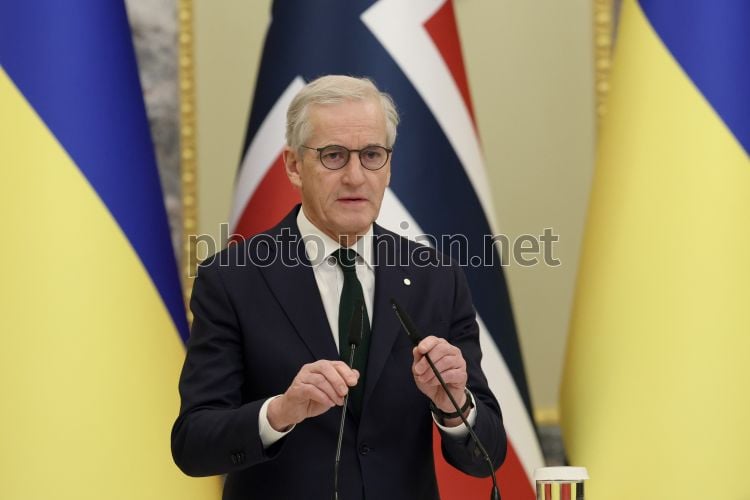 Премьер-министр Королевства Норвегия Йонас Гар Стере во время совместной с Президентом Украины Владимиром Зеленским встречи с представителями медиа, в Киеве, 25 февраля 2026 г. Президент Владимир Зеленский провел встречу с премьер-министром Норвегии Йонасом Гаром Стере. Основным фокусом переговоров стало укрепление энергетической безопасности и переход к долгосрочному стратегическому партнерству. Фото Ковальчук Виктор / УНИАН