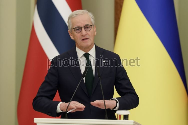 Премьер-министр Королевства Норвегия Йонас Гар Стере во время совместной с Президентом Украины Владимиром Зеленским встречи с представителями медиа, в Киеве, 25 февраля 2026 г. Президент Владимир Зеленский провел встречу с премьер-министром Норвегии Йонасом Гаром Стере. Основным фокусом переговоров стало укрепление энергетической безопасности и переход к долгосрочному стратегическому партнерству. Фото Ковальчук Виктор / УНИАН