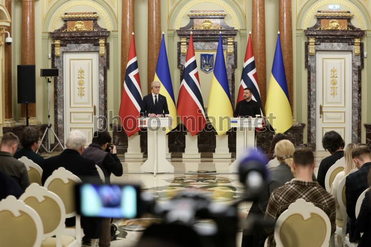 Президент Украины Владимир Зеленский и Премьер-министр Королевства Норвегия Йонас Гар Стере во время встречи с представителями медиа, в Киеве, 25 февраля 2026 г. Президент Владимир Зеленский провел встречу с премьер-министром Норвегии Йонасом Гаром Стере. Основным фокусом переговоров стало укрепление энергетической безопасности и переход к долгосрочному стратегическому партнерству. Фото Ковальчук Виктор / УНИАН