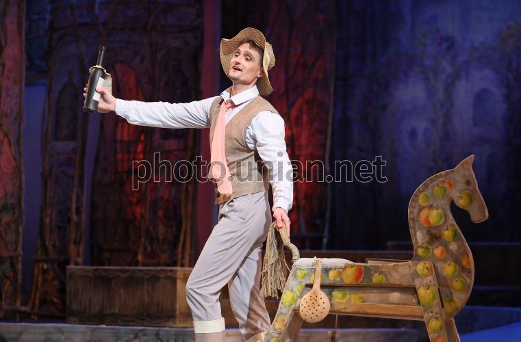 Комическая опера «Любовный напиток» на сцене Львовской национальной оперы, во Львове, 1 марта 2026 г. «Любовный напиток» (итал. L'elisir d'amore) — лирико-комическая операиталий Феличе Романи. Это трогательная история любви и веселая, жизнерадостная комедия с замечательной музыкой, благодаря чему эта опера стала одним из самых популярных представлений всех времен. Исполняется на итальянском языке с украинскими субтитрами. В главных партиях Алина Диденко (Адина), заслуженный артист Украины Олег Садецкий (Неморино), Наталья Степаняк (Джанетта), Алексей Ветров (Белькоре), Дмитрий Кокотко (Дулькамара). Фото Кравс Евгений / УНИАН