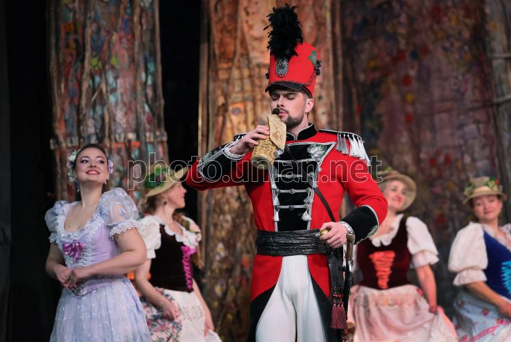 Оперный певец Алексей Ветров (Белькоре) во время комической оперы «Любовный напиток» на сцене Львовской национальной оперы, во Львове, 1 марта 2026 г. «Любовный напиток» (итал. L'elisir d'amore) — лирико-комическая операиталий Феличе Романи. Это трогательная история любви и веселая, жизнерадостная комедия с замечательной музыкой, благодаря чему эта опера стала одним из самых популярных представлений всех времен. Исполняется на итальянском языке с украинскими субтитрами. В главных партиях Алина Диденко (Адина), заслуженный артист Украины Олег Садецкий (Неморино), Наталья Степаняк (Джанетта), Алексей Ветров (Белькоре), Дмитрий Кокотко (Дулькамара). Фото Кравс Евгений / УНИАН