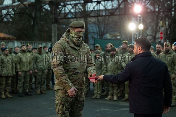 Президент Украины Владимир Зеленский вручает награды защитникам-мусульманам во время посещения Ифтара в Киеве, 2 марта 2026 года. Во время посещения Ифтара (ужин после захода солнца во время Рамадана) Владимир Зеленский наградил защитников-мусульман, которые служат в ВСУ и Национальной полиции, орденом князя Ярослава Мудрого V степени, орденом Богдана Хмельницкого III степени, орденом «За мужество» III степени Украине» и медалью «Защитнику Отчизны». 18 февраля 2026 для мусульман начался Рамадан 2026, он завершится 20 марта празднованием Ураза-байрам. Фото УНИАН