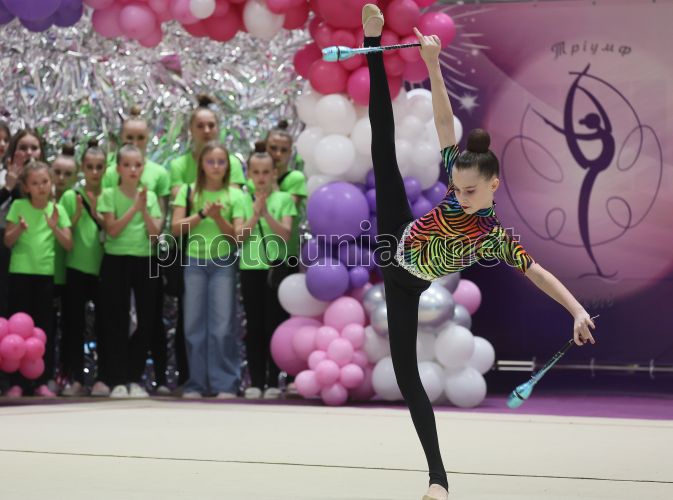 Участница XII Всеукраинского турнира по художественной гимнастике «Престиж-2026» в городе Винники, 7 марта 2026 г. В течение выходных спортивный зал «Эмели резорт» стал местом проведения 12-го Всеукраинского турнира по художественной гимнастике «Престиж-2026». В соревнованиях приняли участие юные гимнастки из разных уголков Украины. Хорошо декорированный зал, великолепные выступления спортсменок, фантастические костюмы (тренд этого года – максимум блестящих паеток). Фото Кравс Евгений / УНИАН