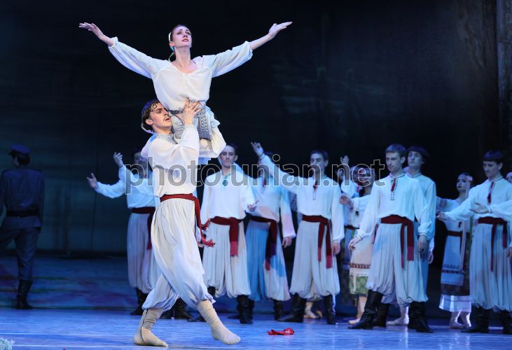 Анастасия Бондарь (Лилея) и Арсен Марусенко (Степан) во время балета «Лилея» Константина Данкевича по мотивам баллады Тараса Шевченко, который прошел во львовской опере к годовщине Кобзаря, 8 марта 2026 г. Фото Кравс Евгений / УНИАН