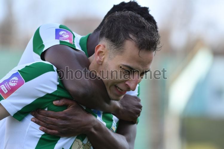 Игрок ФК "Карпаты" (Львов) Ян Костенко (№26) радуется забитому голу во время матча 19-го тура Чемпионата Украины среди команд УПЛ (Премьер-лига) по футболу (сезон 2025/26) между ФК "Карпаты" (Львов) и ФК "Кудровка" (Кудровка), на стадионе "Украина" во Львове, 8 марта 2026 г. Матч закончился со счётом 1:1. Фото Тыс Николай / УНИАН