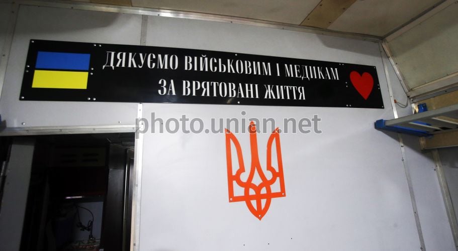 В вагоне-реанимации для 5 тяжелораненых во время презентации медицинских вагонов "Укрзалізниці", с помощью которых эвакуируют раненых украинцев, на перроне Центрального железнодорожного вокзала, в Киеве, 12 марта 2026 года. Сегодня четвертая годовщина с тех пор, как в рейс отправились первые медицинские вагоны, созданные "Укрзалізницею". Фото Синица Александр / УНИАН