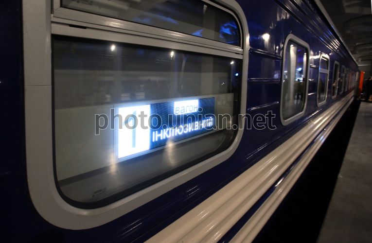 Инклюзивный вагон для 8 пассажиров на колесных креслах в Киеве, 12 марта 2026 г. В этот день Укрзализныця продемонстрировала медицинские вагоны и вагоны, адаптированные для перевозки людей с инвалидностью. Фото Синица Александр / УНИАН