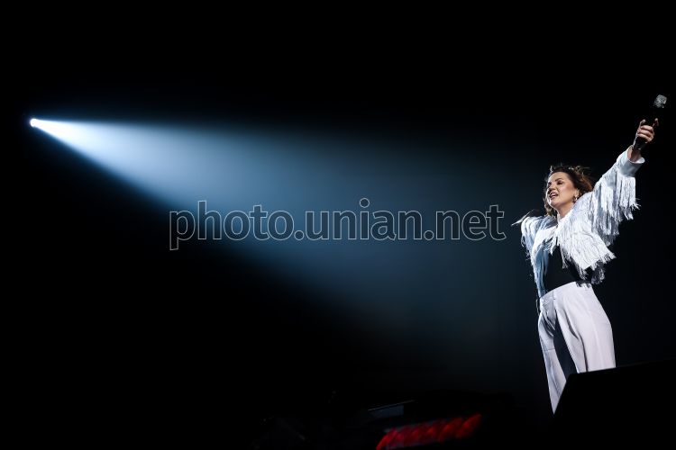 Певица Оля Цыбульская во время сольного концерта в Киеве, 12 марта 2026 г. В МЦКИ (Октябрьский дворец) состоялся большой концерт артистки Оли Цыбульской — первое выступление в столице с начала полномасштабной войны. Событие было представлено в формате масштабного сценического шоу с современной визуальной постановкой, спецэффектами и живым взаимодействием со зрителями. Фото Горлушко Вальдемар / УНИАН