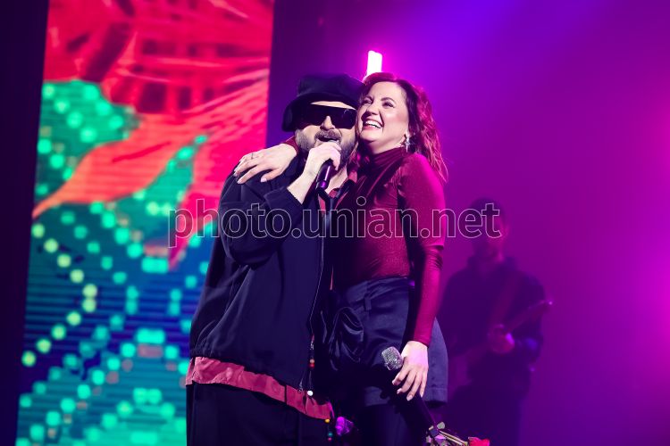 Лидер украинской поп-группы "Дзидзе" Михаил Хома (Dzidzio) и певица Оля Цыбульская во время сольного концерта Оли Цыбульской в Киеве, 12 марта 2026 г. В МЦКИ (Октябрьский дворец) состоялся большой концерт артистки Оли Цыбульской — первое выступление в столице с начала полномасштабной войны. Событие было представлено в формате масштабного сценического шоу с современной визуальной постановкой, спецэффектами и живым взаимодействием со зрителями. Фото Горлушко Вальдемар / УНИАН