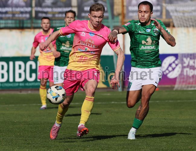 Игровой момент матча 20-го тура Чемпионата Украины среди команд УПЛ (Премьер-лига) по футболу (сезон 2025/26) между СК «Полтава» (Полтава) и ФК "Карпаты" (Львов) на стадионе "Украина" во Львове, 13 марта 2026 г. Матч закончился со счетом 0:4 в пользу ФК "Карпаты" (Львов). Фото Кравс Евгений / УНИАН