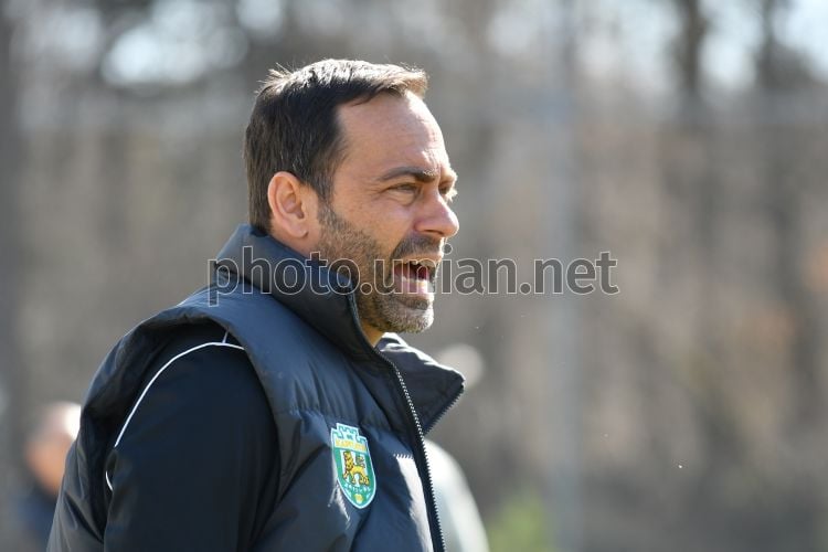 Главный тренер ФК "Карпаты" (Львов) Франсиско Фернандес во время контрольного матча между ФК "Карпаты" (Львов) и ФК "Буковина" (Черновцы) в селе Бартатов (Львовская область), 14 марта 2026 г. Матч закончился со счетом 3:1 в пользу ФК "Карпаты" (Львов). Фото Тыс Николай / УНИАН