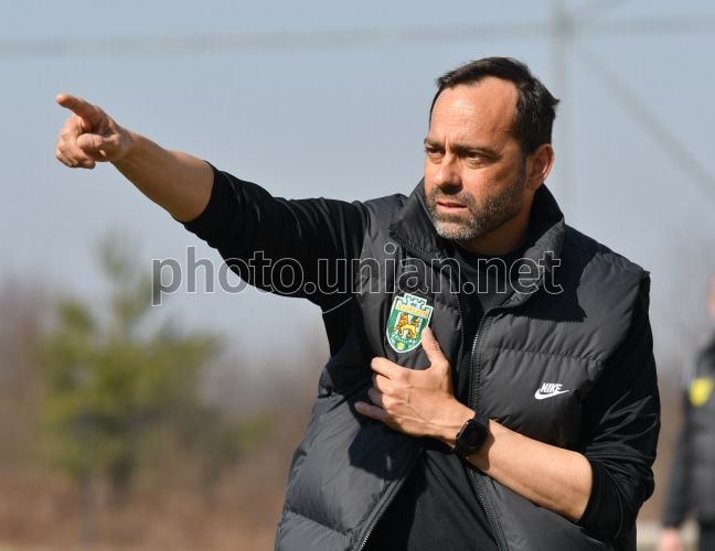 Главный тренер ФК "Карпаты" (Львов) Франсиско Фернандес во время контрольного матча между ФК "Карпаты" (Львов) и ФК "Буковина" (Черновцы) в селе Бартатов (Львовская область), 14 марта 2026 г. Матч закончился со счетом 3:1 в пользу ФК "Карпаты" (Львов). Фото Тыс Николай / УНИАН