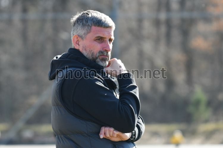 Главный тренер ФК "Буковина" (Черновцы) Сергей Шищенко во время контрольного матча между ФК "Карпаты" (Львов) и ФК "Буковина" (Черновцы) в селе Бартатов (Львовская область), 14 марта 2026 г. Матч закончился со счетом 3:1 в пользу ФК "Карпаты" (Львов). Фото Тыс Николай / УНИАН