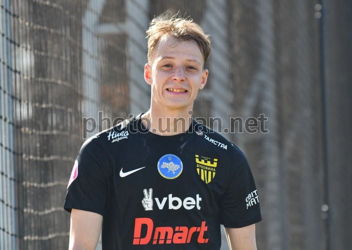 Полузащитник ФК "Буковина" (Черновцы) Евгений Подлепенец (№12) во время контрольного матча между ФК "Карпаты" (Львов) и ФК "Буковина" (Черновцы) в селе Бартатов (Львовская область), 14 марта 2026 г. Матч закончился со счетом 3:1 в пользу ФК "Карпаты" (Львов). Фото Тыс Николай / УНИАН