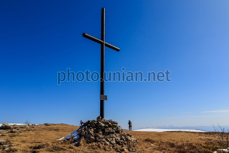 Восьмиметровый поклонный Крест на Полонине Руна в Закарпатской области, 15 марта 2026 г. Фото Немеш Янош / УНИАН