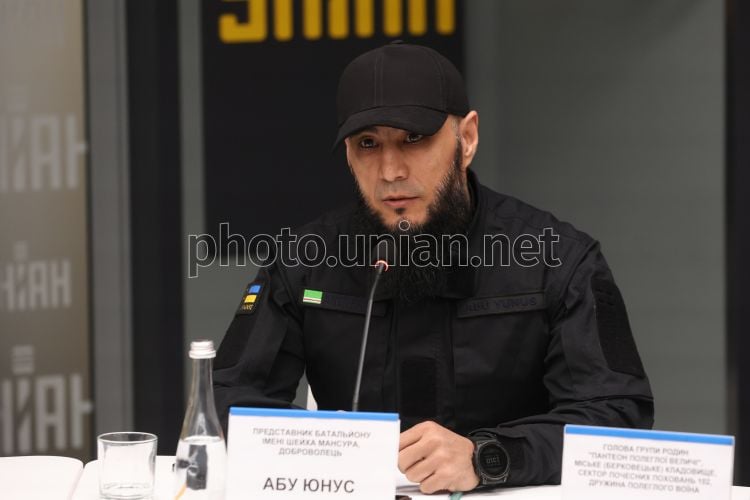 Представитель батальона имени Шейха Мансура Абу Юнус во время круглого стола на тему: «Будущее украинского общества во время войны и после победы» в пресс-центре УНИАН в Киеве, 24 марта 2026 г. Фото Ковальчук Виктор / УНИАН