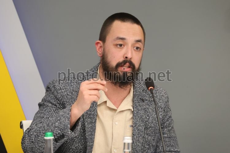 Модератор, общественный деятель, предприниматель, лидер системных решений, адаптировавший гостинично-ресторанную сферу бизнеса под нужды ветеранов и их семей Георгий Джурко во время круглого стола на тему: «Будущее украинского общества во время войны и после победы» в пресс-центре УНИАН в Киеве, 24 марта 2026 г. Фото Ковальчук Виктор / УНИАН