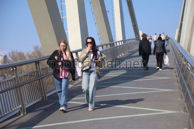 Мост-волна — пешеходно-велосипедный мост в Киеве, соединяющий парк «Наталка» и Оболонский остров в Киеве, 27 марта 2026 г. Фото Ковальчук Виктор / УНИАН