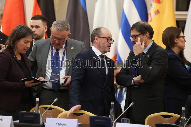 Государственный секретарь по иностранным и глобальным делам Министерства иностранных дел, ЕС и сотрудничества Королевства Испания Диего Мартинес Белио (в центре) во время выездного неформального заседания Совета ЕС по иностранным делам (FAC) в Киеве, 31 марта 2026 г. Фото Ковальчук Виктор / УНИАН
