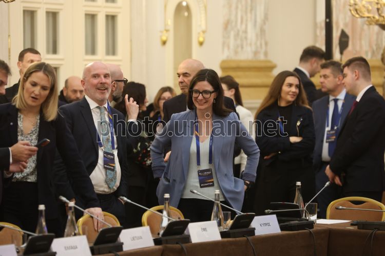 Государственный секретарь по европейским делам Министерства иностранных дел Португальской Республики Инеш Домингуш (в центре) во время выездного неформального заседания Совета ЕС по иностранным делам (FAC) в Киеве, 31 марта 2026 г. Фото Ковальчук Виктор / УНИАН