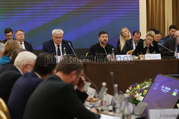 Министр иностранных дел Украины Андрей Сибига, президент Украины Владимир Зеленский и Высокая представительница Европейского Союза по иностранным делам и политике безопасности Кая Каллас во время выездного неформального заседания Совета ЕС по иностранным делам (FAC) в Киеве, 31 марта 2026 г. Фото Ковальчук Виктор / УНИАН
