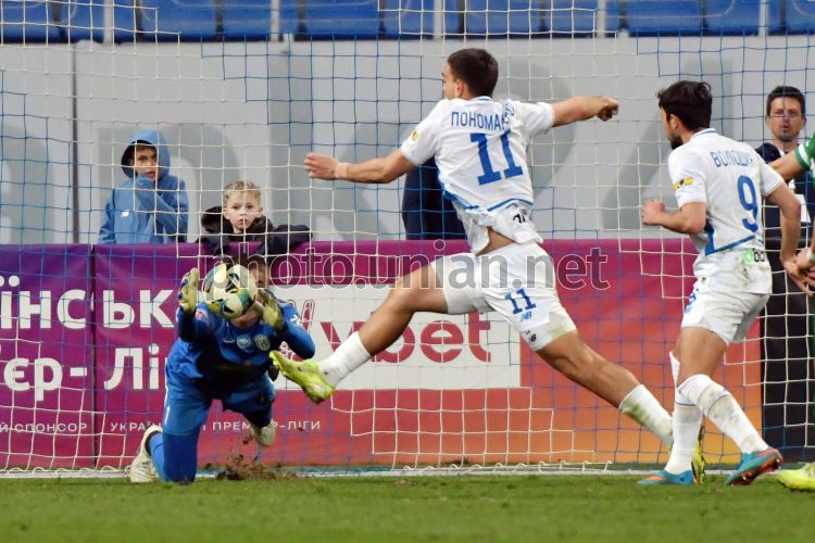 Игровой момент матча 22-го тура Чемпионата Украины среди команд УПЛ (Премьер-лига) по футболу между ФК «Динамо» (Киев) и ФК «Карпаты» (Львов), в Киеве, 4 апреля 2026 г. Фото Тыс Николай / УНИАН