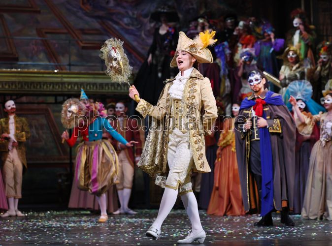 Анна Белякова (Оскар) во время оперы «Бал-маскарад» Джузеппе Верди, во Львове, 7 апреля 2026 г. На сцену Львовской национальной оперы вернулась легендарная постановка «Бала-маскарада» Дж. Верди в режиссуре Василия Вовкуна. Выполняется на итальянском языке с украинскими субтитрами. Фото Кравс Евгений / УНИАН