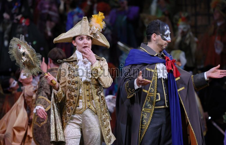Анна Белякова (Оскар) во время оперы «Бал-маскарад» Джузеппе Верди, во Львове, 7 апреля 2026 г. На сцену Львовской национальной оперы вернулась легендарная постановка «Бала-маскарада» Дж. Верди в режиссуре Василия Вовкуна. Выполняется на итальянском языке с украинскими субтитрами. Фото Кравс Евгений / УНИАН