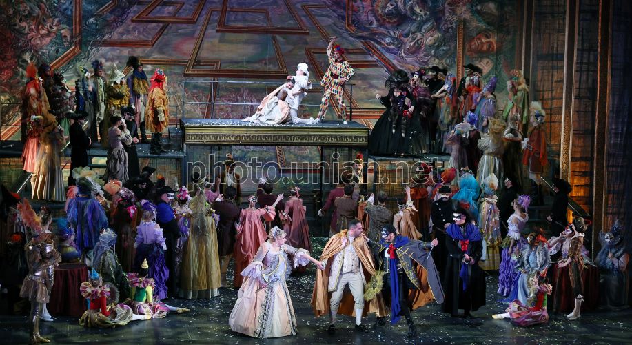 Опера «Бал-маскарад» Джузеппе Верди, во Львове, 7 апреля 2026 г. На сцену Львовской национальной оперы вернулась легендарная постановка «Бала-маскарада» Дж. Верди в режиссуре Василия Вовкуна. Выполняется на итальянском языке с украинскими субтитрами. Фото Кравс Евгений / УНИАН