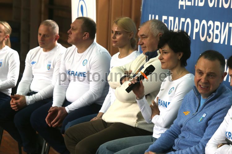 Двукратный чемпион Европы по дзюдо, заслуженный тренер Украины Геннадий Билодид, серебряный и бронзовый призер Олимпийских игр по дзюдо Роман Гонтюк, чемпионка юношеских Олимпийских игр, серебряный призер чемпионата мира по легкой атлетике Юлия Левченко, бронзовый призер Олимпийских игр по метанию молота Александр Крикун, бронзовый призер Олимпийских игр по прыжкам в воду Анна Сорокина, президент НОК Украины, олимпийский чемпион по фехтованию Вадим Гутцайт во время мероприятия к Международному дню спорта в Киевском спортивном лицее, 8 апреля 2026 г. В мероприятии приняли участие известные спортсмены, олимпийские чемпионы. Лицеисты могли пообщаться с титулованными украинскими олимпийцами, принять участие в олимпийской викторине. В рамках мероприятия провели экологическую акцию – высадили деревья на территории лицея. Фото Синица Александр / УНИАН