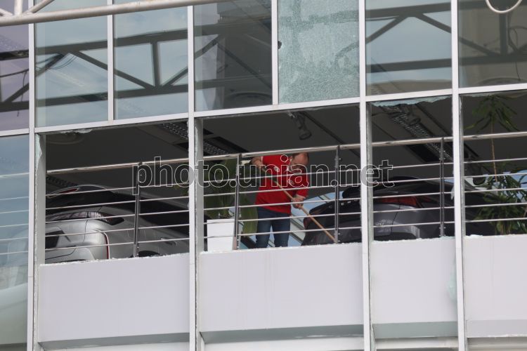 Поврежденное в результате ракетной атаки фасадное остекленение в здании в Оболонском районе Киева, 16 апреля 2026 г. В ночь на 16 апреля Россия в очередной раз атаковала Киев. Враг запустил по столице баллистические ракеты. В результате атаки погибли 4 человека, среди которых 12-летний мальчик. Зафиксированы разрушения в Подольском, Оболонском, Шевченковском и Деснянском районах. В Оболонском районе произошло возгорание припаркованных автомобилей, повреждено рядом расположенное складское здание, шиномонтаж и здание магазина. Фото Ковальчук Виктор / УНИАН