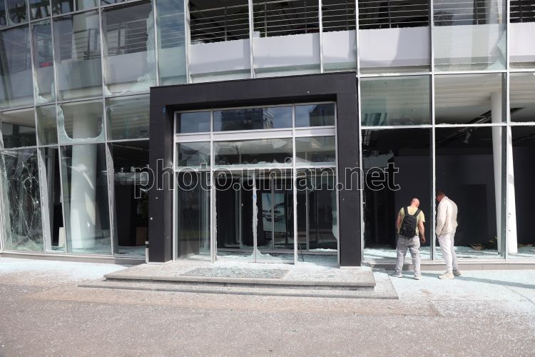 Поврежденное в результате ракетной атаки фасадное остекленение в здании в Оболонском районе Киева, 16 апреля 2026 г. В ночь на 16 апреля Россия в очередной раз атаковала Киев. Враг запустил по столице баллистические ракеты. В результате атаки погибли 4 человека, среди которых 12-летний мальчик. Зафиксированы разрушения в Подольском, Оболонском, Шевченковском и Деснянском районах. В Оболонском районе произошло возгорание припаркованных автомобилей, повреждено рядом расположенное складское здание, шиномонтаж и здание магазина. Фото Ковальчук Виктор / УНИАН