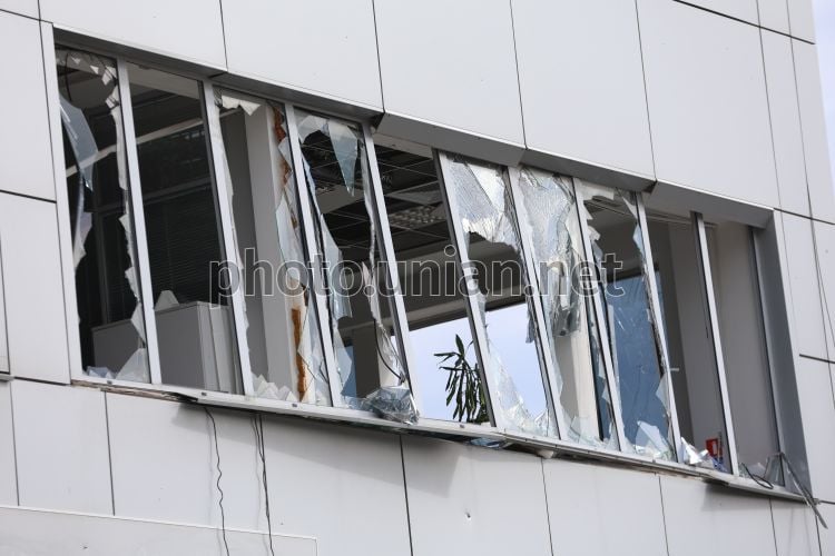 Поврежденное в результате ракетной атаки фасадное остекленение в здании в Оболонском районе Киева, 16 апреля 2026 г. В ночь на 16 апреля Россия в очередной раз атаковала Киев. Враг запустил по столице баллистические ракеты. В результате атаки погибли 4 человека, среди которых 12-летний мальчик. Зафиксированы разрушения в Подольском, Оболонском, Шевченковском и Деснянском районах. В Оболонском районе произошло возгорание припаркованных автомобилей, повреждено рядом расположенное складское здание, шиномонтаж и здание магазина. Фото Ковальчук Виктор / УНИАН