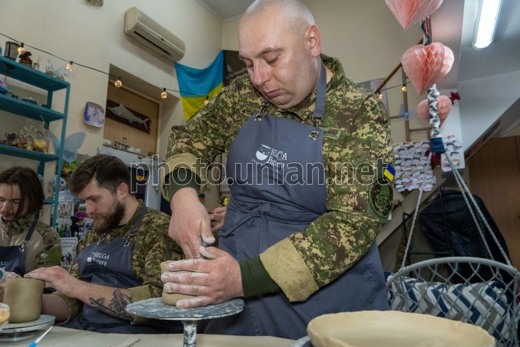 Военнослужащие лепят из глины во время занятия по арт-терапии в Харькове, 24 апреля 2026 г. Военнослужащие 13-й бригады НГУ "Хартия" и 17-й Полтавской бригады НГУ "Рейд" приняли участие в занятии по арт-терапии, а именно гончарство. Это одна из форм психологического обновления после выполнения боевых задач. Во время занятия бойцы работали с глиной, создавая простые изделия – от посуды до декоративных фигур. Такая деятельность помогает снизить уровень стресса, восстановить концентрацию и эмоциональное равновесие. Подобные инициативы направлены на поддержку ментального здоровья военнослужащих. Фото Мариенко Андрей / УНИАН