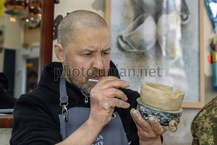 Военнослужащий лепит из глины во время занятия по арт-терапии в Харькове, 24 апреля 2026 г. Военнослужащие 13-й бригады НГУ "Хартия" и 17-й Полтавской бригады НГУ "Рейд" приняли участие в занятии по арт-терапии, а именно гончарство. Это одна из форм психологического обновления после выполнения боевых задач. Во время занятия бойцы работали с глиной, создавая простые изделия – от посуды до декоративных фигур. Такая деятельность помогает снизить уровень стресса, восстановить концентрацию и эмоциональное равновесие. Подобные инициативы направлены на поддержку ментального здоровья военнослужащих. Фото Мариенко Андрей / УНИАН