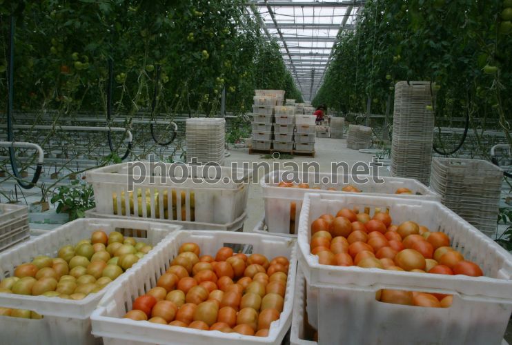FILE Работница ОАО ”Комбинат ”Тепличный” складывает в лотки спелые помидоры в с. Калиновка (Броварской р-н, Киевской обл.), в пятницу, 21 апреля 2003 г. Фото УНИАН