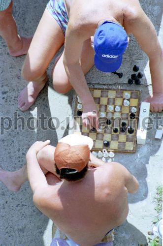 COMM АРХИВ УНИАН. Отдыхающие играют в шахматы на пляже. Через 2 дня начинается лето 2005 года и пляжный сезон уже открытый.
